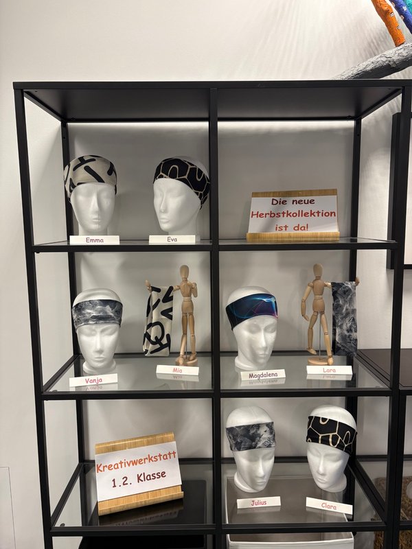 Am Ende hielt jedes Kind sein eigenes, selbst genähtes Stirnband in den Händen – ein echtes Unikat! Die Freude und der Stolz waren groß, als die fertigen Werke im Showroom der Schule ausgestellt wurden und bewundert werden konnten.