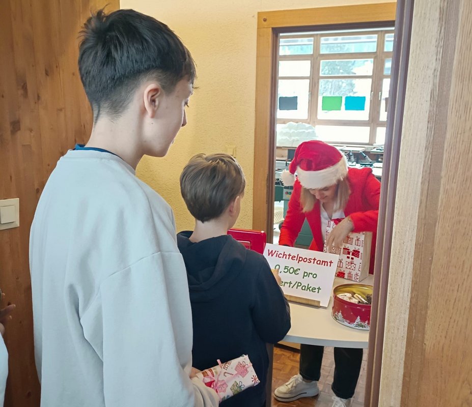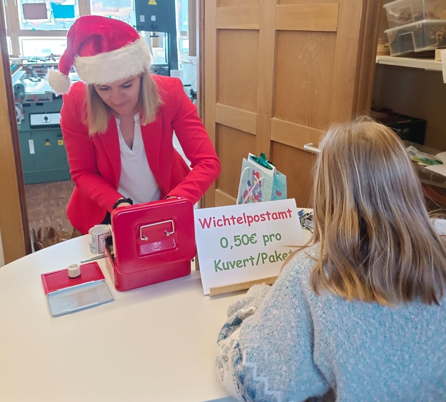 Beim in diesem Jahr erstmals durchgeführten Wichtelpostamt war der Andrang groß. Über vier Wochen hinweg war das Postamt zu festgelegten Zeiten geöffnet, wobei die Direktorin die Briefe, selbstgebastelten Geschenke und weiteren Abgaben persönlich entgegennahm.