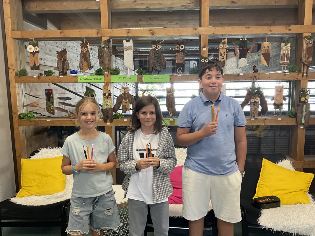 3 Stunden Kreativwerkstatt Challenge - aus Holz wird Kunst - unsere Schuleulen